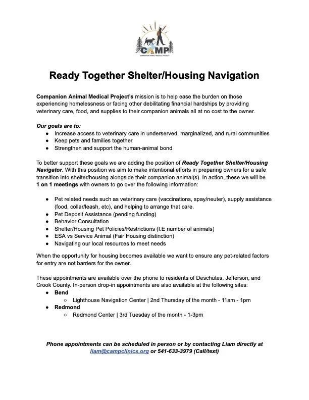 CAMPclinics: For pet owners experiencing homelessness and/or low-income